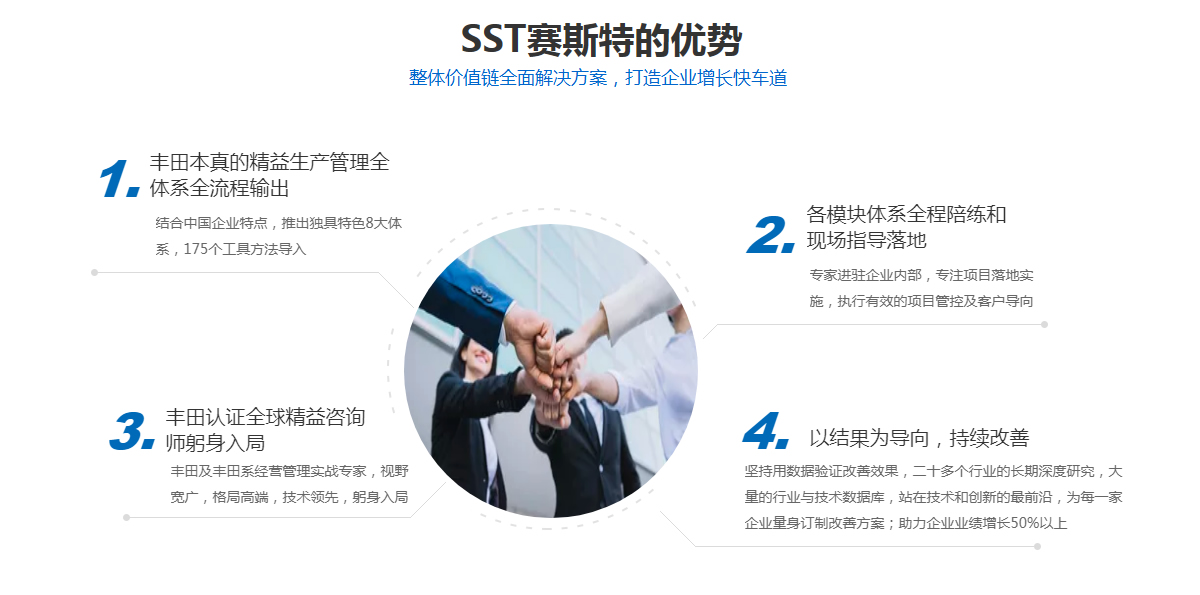 賽斯特集團(tuán)(SST)是豐田為背景的一家致力于企業(yè)管理咨詢(xún)、培訓(xùn)服務(wù)為主的國(guó)際化管理咨詢(xún)機(jī)構(gòu),依托于精益發(fā)源地豐田公司為背景的專(zhuān)家團(tuán)隊(duì),專(zhuān)業(yè)從事精益生產(chǎn)培訓(xùn)和咨詢(xún)服務(wù)的管理咨詢(xún)機(jī)構(gòu),中國(guó)本土唯一一家融合日本豐田,北京現(xiàn)代,韓國(guó)三星等專(zhuān)家為一體的咨詢(xún)機(jī)構(gòu)。旗下?lián)碛校禾旖蛸愃固仄髽I(yè)管理咨詢(xún)公司,天津眾益天成管理咨詢(xún)公司,北京冠群精益管理咨詢(xún)公司,天津精益智能咨詢(xún)有限公司等四家分支機(jī)構(gòu)。